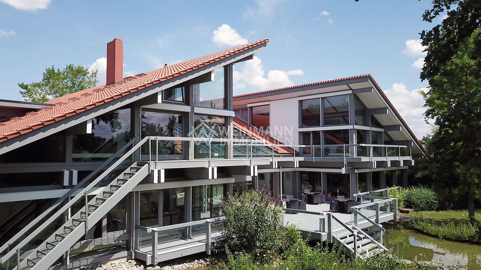 mit großzügiger Glasfassade schafft eine helle, offene Atmosphäre und verbindet Innen- und Außenräume auf elegante Weise