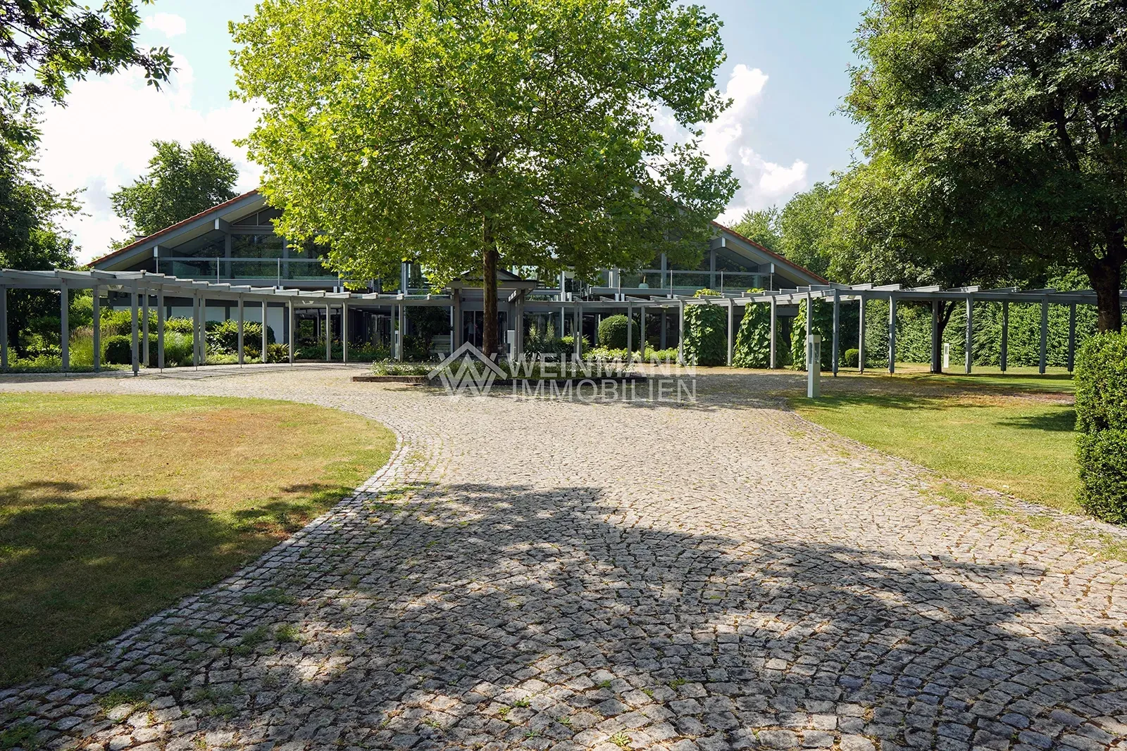 Außenwelt, eröffnet sich auf rund 9.277 m² Grundstücksfläche ein Ensemble, das sowohl